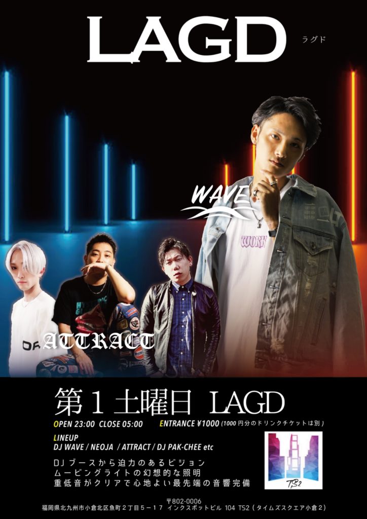 ( 東京時代渋谷でレギュラーDJとして活躍、初期のタイムズスクエア小倉のhead DJとして活躍後、福岡IBIZAのメインステージのレギュラーDJとなるがコロナによってDJ活動を休止を余儀なくされる。そして、2022 TS2の復活と共にTS2の第1週のメインDJとして活動を復活させる。福岡で注目されるDJである)