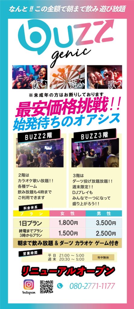 BUZZ GENIC アミューズメントand着席型ナイトクラブ